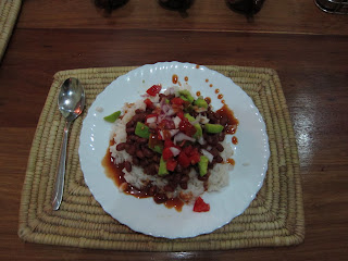 We got back on the main road for a bit then turned into a dirt road. I already liked this neighborhood. Children playing, chickens wandering and goats bleating. We got to the end of the road to a gate and when they opend it up I could not hold in my excitement. The house was perfect and we hadn't even seen the inside. Jason and I walked around the house giddy with excitement, but surely we could not afford this nice of a house! It came fully furnished, inclusing refrigerator, washing machine, back up generator, hot water, a house manager, a maid, chickens, goats (a pregnant one), dog, cat, wrap around porch with 3 tables, and a garden with a sitting area. I was feeling that this house was perfect but there was no way we could afford it. Jason finally asked about rent and we were right, we couldn't afford this house but the owner was willing to deal. We got him to a price that we both agreed on and moved in the next day!